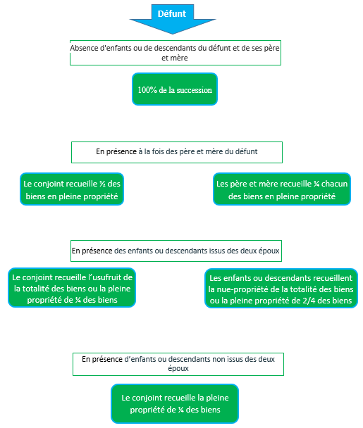 En présence de conjoint successible, les droits du conjoint survivant dépendent des héritiers avec lesquels il vient en concours à la succession.